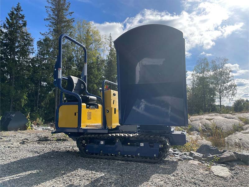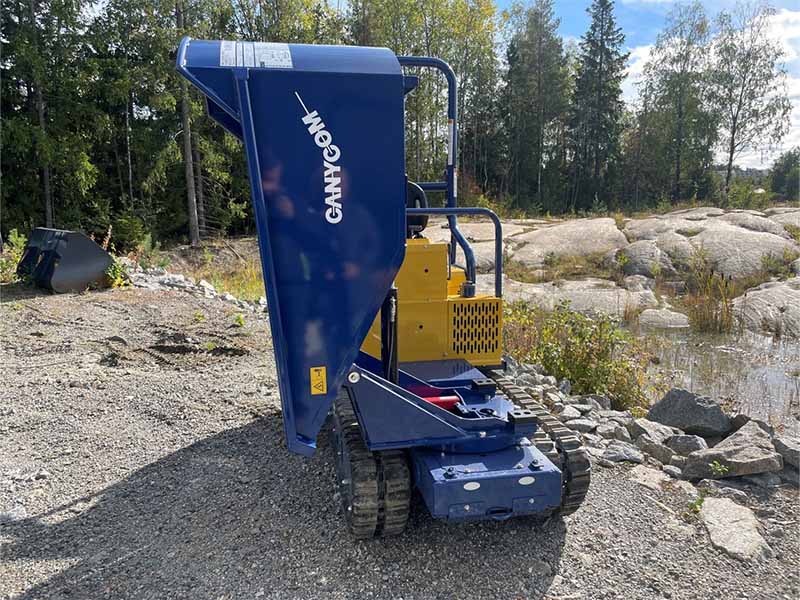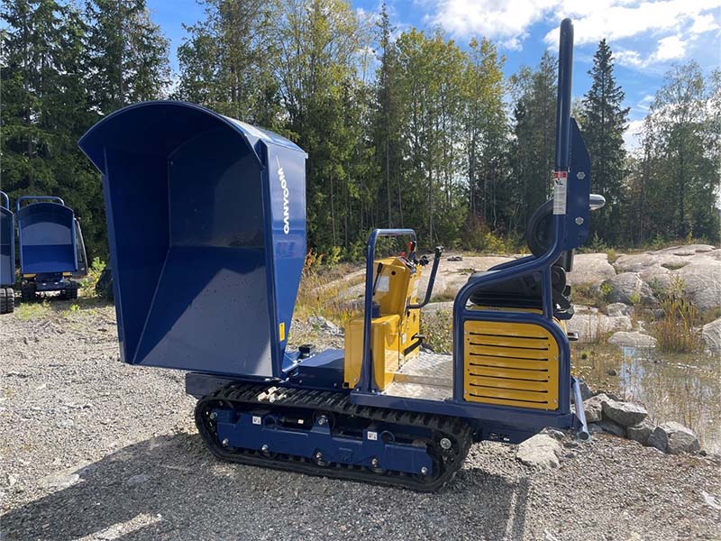 For anleggsbransjen og anleggsgartnere. Kompakt beltedumper med svingbar dumperkasse for flere typer arbeid. Heavy duty gummibelter og 5 underruller sørger for komfortabel kjøring.