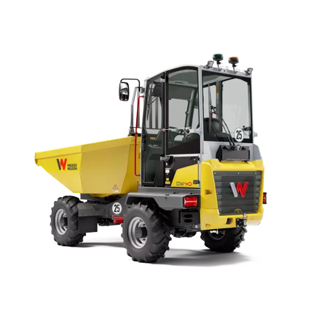 Med moderne motorteknologi klarer hjuldumperen hele 25 km/t med totalt fire tonn nyttelast. Operatøren kan stole på høye sikkerhetsstandarder: Kasse- og hellingsovervåkingen advarer operatøren mot usikker bruk av maskinen, samtidig som kameraene inkludert vaskeanlegg foran og bak viser omgivelsene på den store 7-tommers-skjermen konstant. Dette, og mye annet sikkerhetsutstyr, gjør DW40 til en partner på byggeplassen som kan forebygge ulykker og som gir operatøren betydelig bedre komfort.